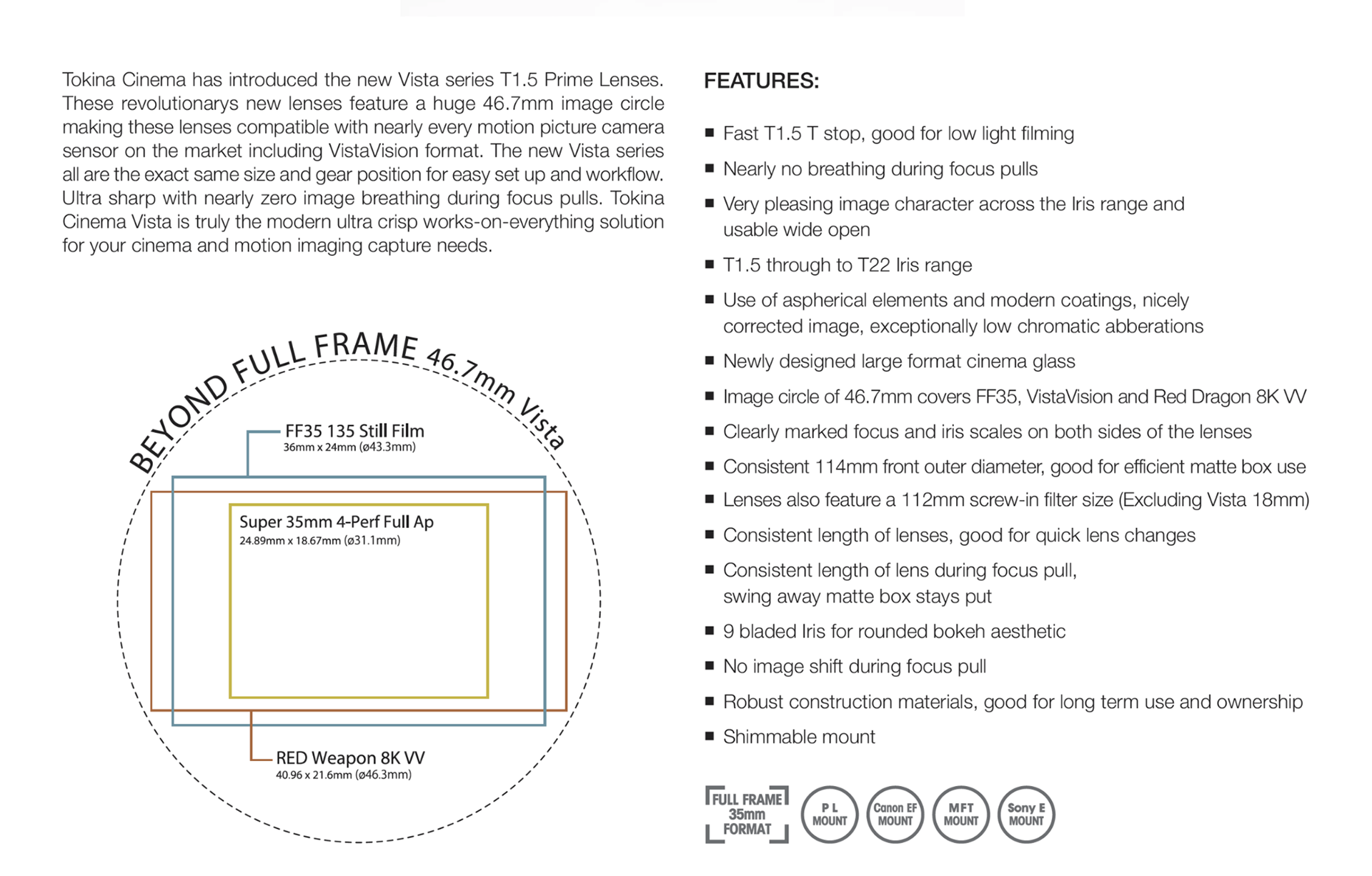 Huge coverage for full-frame and bigger sensors like Vista Vision,